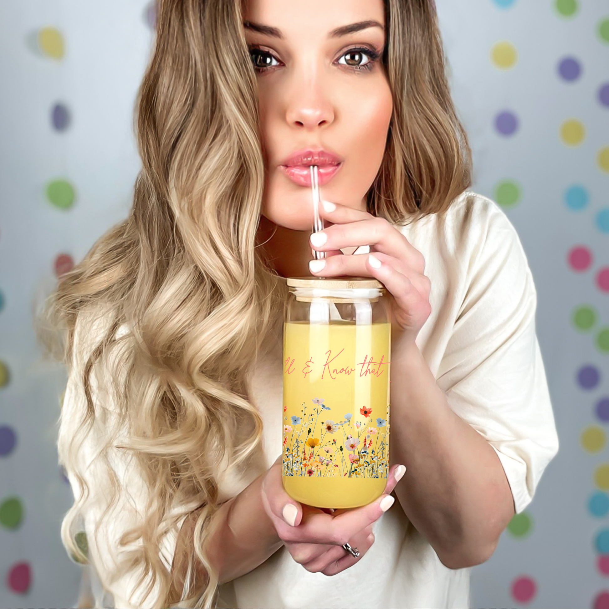 Sip in style and faith with the “Be Still & Know” glass can cup, inspired by Psalm 46:10. Featuring a delicate wildflower design wrapped around the glass and the reminder to rest in God’s presence, this tumbler is both beautiful and practical. With its bamboo lid and reusable straw, it’s perfect for iced coffee, tea, smoothies, or everyday hydration. A lovely faith-filled gift for friends, family, or yourself.